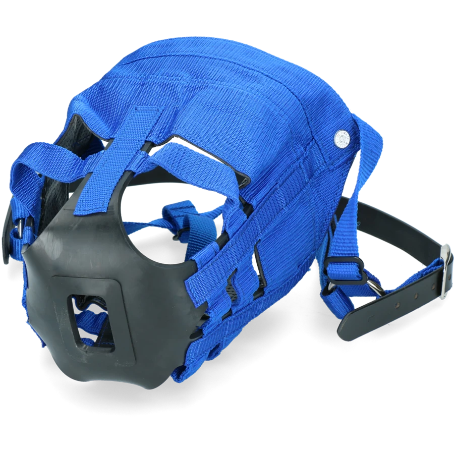 Met dit masker zijn de neusgaten vrij voor het ademen en met een hoog voorstuk die voorkomt dat het paard het masker kan verwijderen. Daarnaast heeft deze masker ook een massief kinstuk om wrijven te minimaliseren en een leren hoofdband. Er bevinden zich geen clips zodat vastraken aan draden wordt voorkomen.
