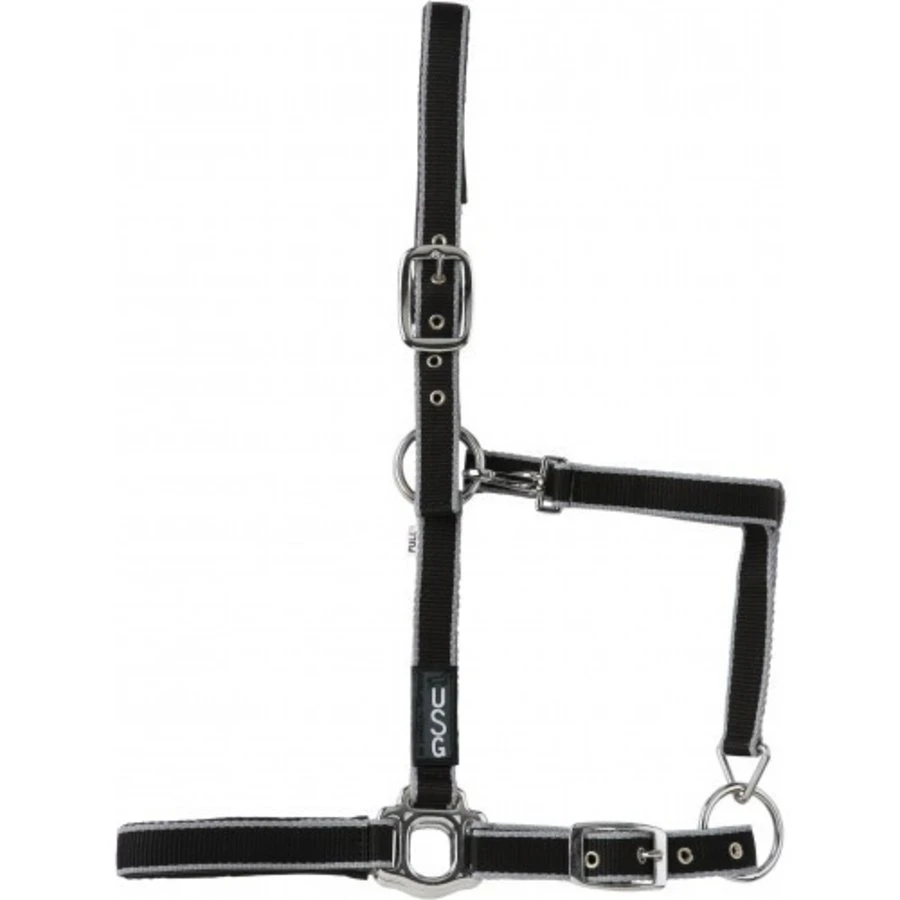 Halster USG is een tweekleurig halster, gemaakt van sterk nylon. Het halster heeft zillverkleurige fittingen, kroongedeelte en neusriem.