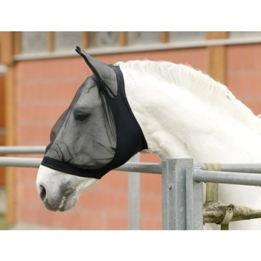 Het masker is niet reflecterend, gemaakt van lycra en is kleinmazig gewoven. Het heeft een optimale pasvorm en valt losjes over de ogen van het paard en ontneemt niet het zicht. Het masker is eenvoudig aan te brengen en heeft een handige klittenbandsluiting.