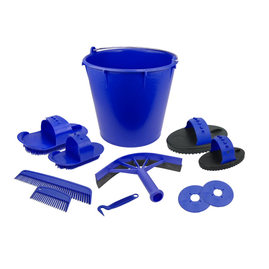 Het handige poetsset voor het goed onderhouden van de vacht van uw paard of pony. Verkrijgbaar in marineblauw kleur.
