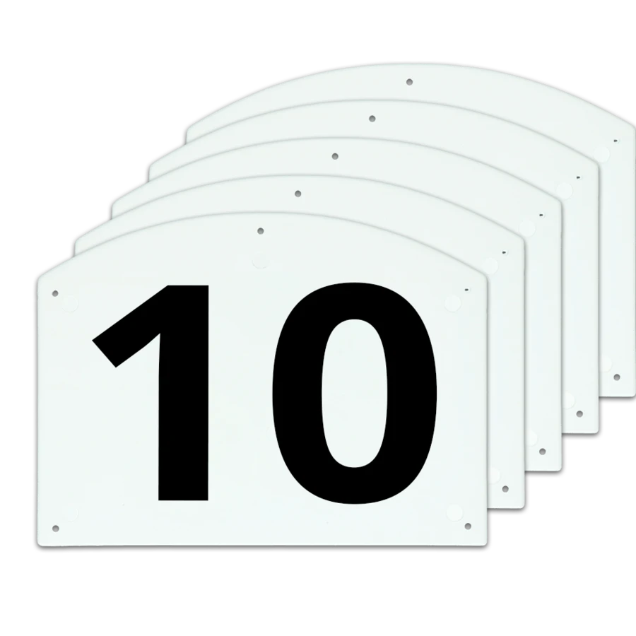 De eenvoudig te bevestigen nummers voor het perfect uitvoeren van oefeningen. De kunststof nummers bevatten voorgeboorde gaatjes.