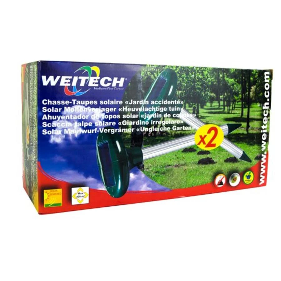 Mollen kunnen een perfect onderhouden tuin veranderen in een krater en aarde nachtmerrie. En mollenklemmen zijn soms niet altijd veilig om te gebruiken. Met deze Solar Mole Repeller mollenverjagers van Weitech bent u snel en veilig van uw mollenplaag af! Ook effectief tegen woelmuizen.