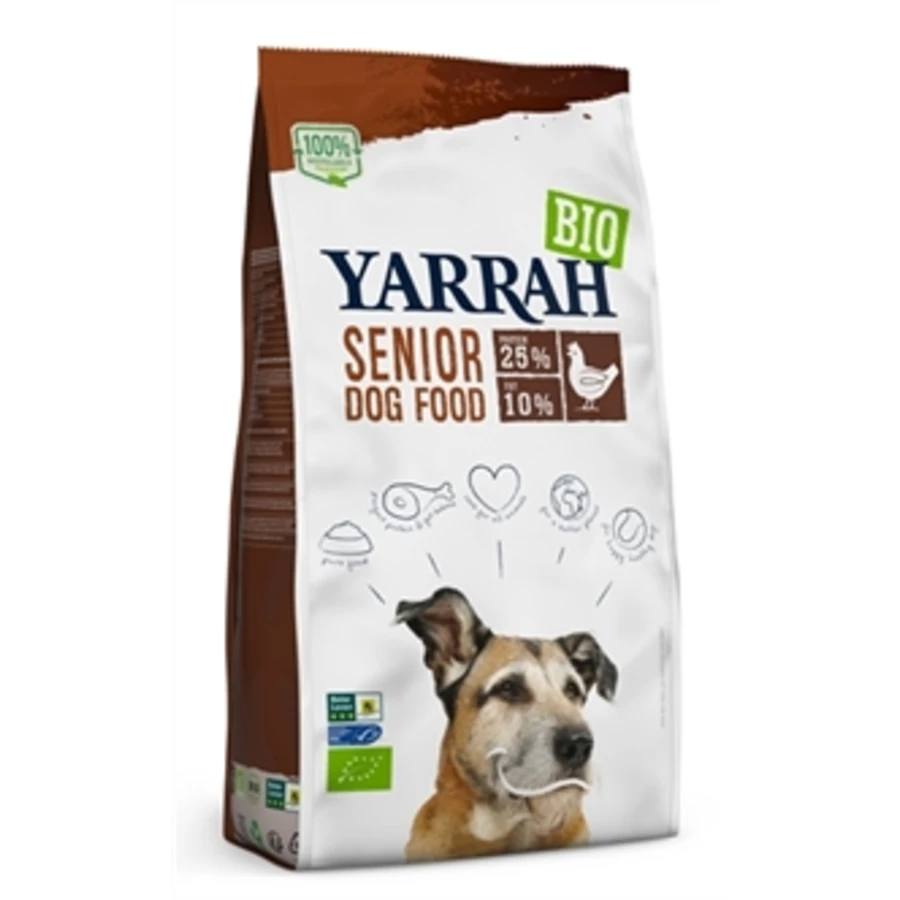 Yarrah Dog Biologische Brokken Senior 10 kg is volledig voer voor de oudere hond uit kip, vis, duivelsklauw, heermoes en rozenbottel, biologisch, proefdiervrij en duurzaam, zonder chemische toevoegingen en in recyclebare verpakking.